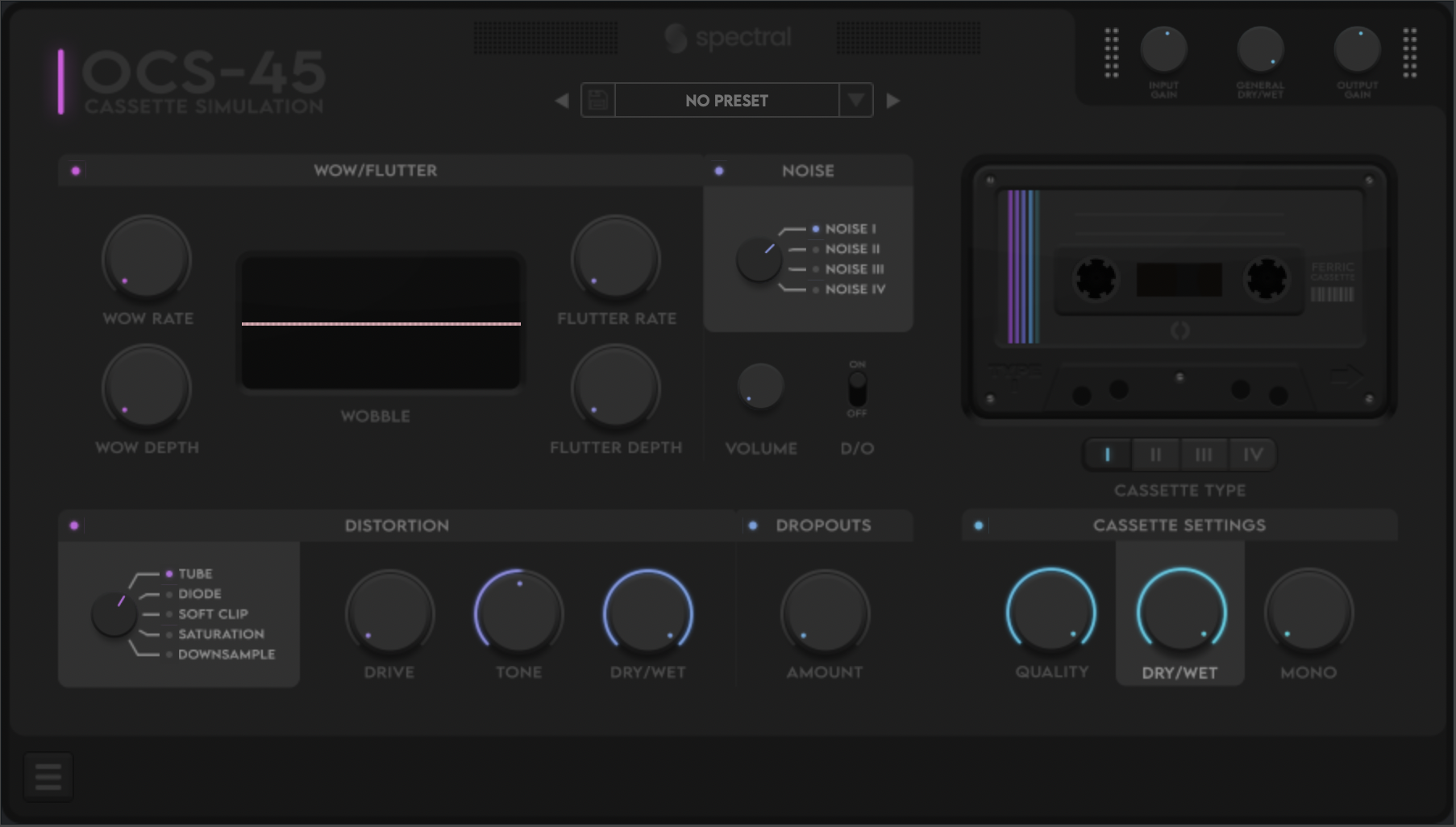 OCS-45 is a Cassette/Tape Simulation effect plugin. With many different parameters to mess with like distortion, flutter, wobble, quality, cassette type and more, this plugin satisfy all your needs to simulate tape. Even by clicking a random pre-made preset, you will get what you are looking for.